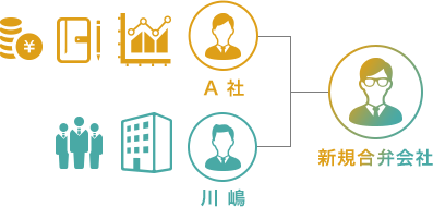 互いの強みを持ち寄ることでシナジー効果が⽣まれる場合、新規合弁会社を創設することも選択肢の1つとなります。