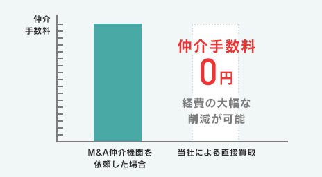 当社が直接ご検討させていただくため、仲介⼿数料が⼀切かかりません。M&Aに関わる経費の⼤幅な削減が可能でございます。